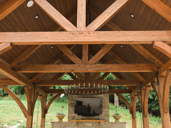 Homeowners in Fenton, Mo. included a modern covered porch and an outdoor kitchen with a sitting area and a television. These outdoor additions offer a gathering space for family and friends.